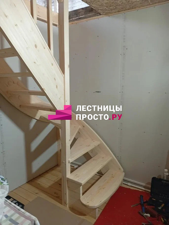 Г-образная лестница из сосны для частного дома ЛС-07/4