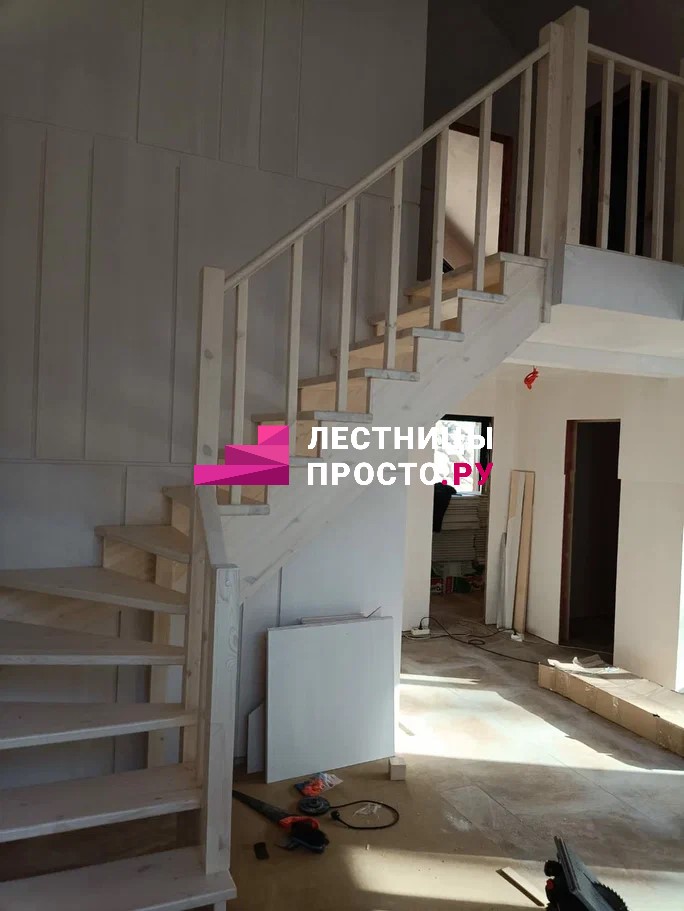 У нас есть похожая готовая лестница Лестница из сосны К-001М/2