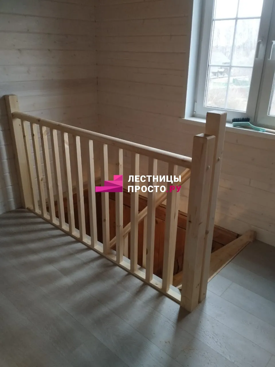 Прямая деревянная лестница с балюстрадой